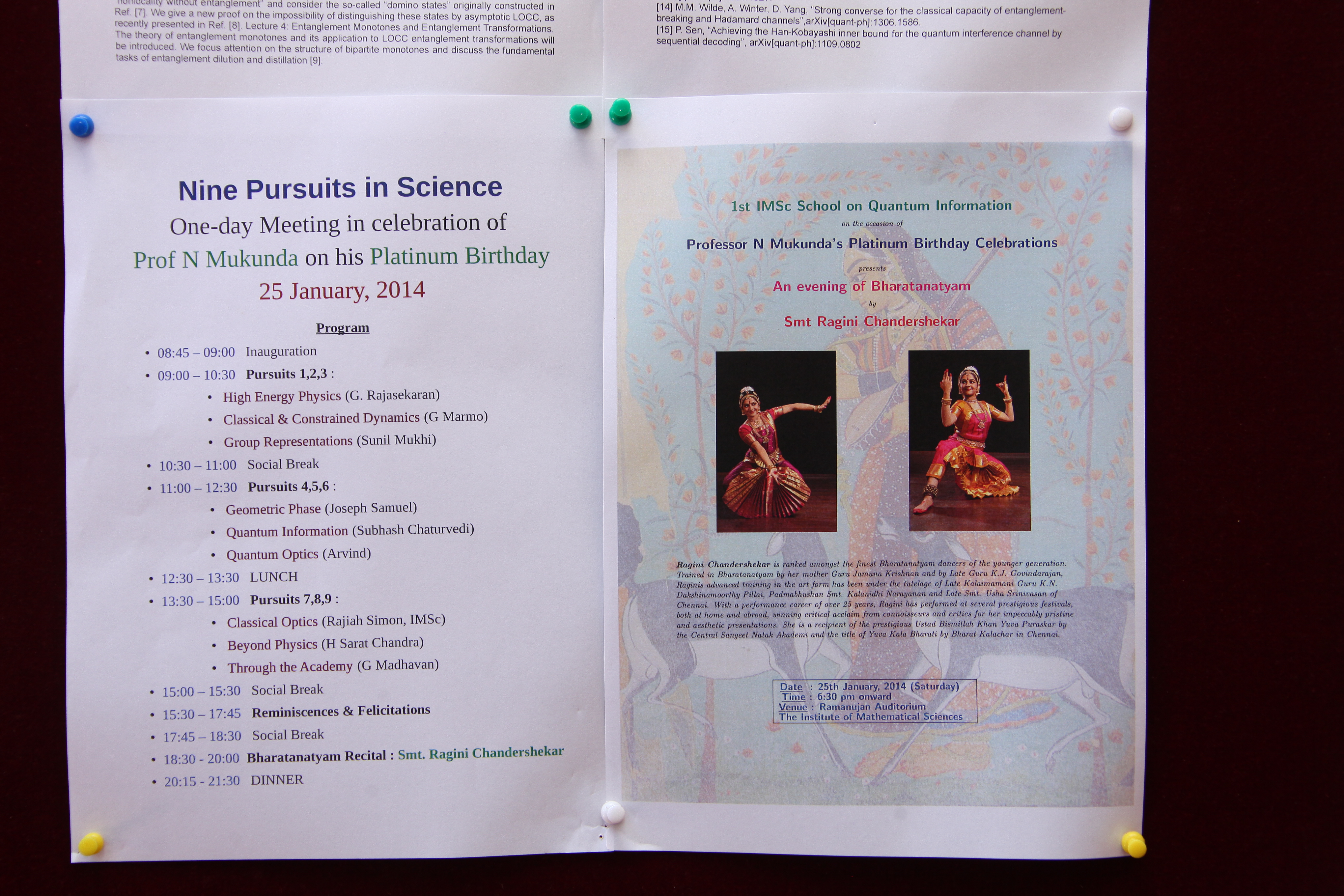 Nine Pursuits in Science One day Meeting in celebration of Prof. N Mukunda on his Platinum Birthday 25 January 2014